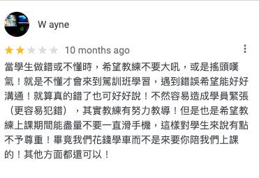 「你們要多讀點書啦!你看教練就是讀很多書(以下省略ㄧ分鐘碎念)……」(他在講這句的時候一直用一種非常嘲諷地快速搖頭 + 嘆氣。這個行為非常的令人煩躁,往後也會不斷出現,如果 google map 評分有激怒學員這項我一定給他滿分)